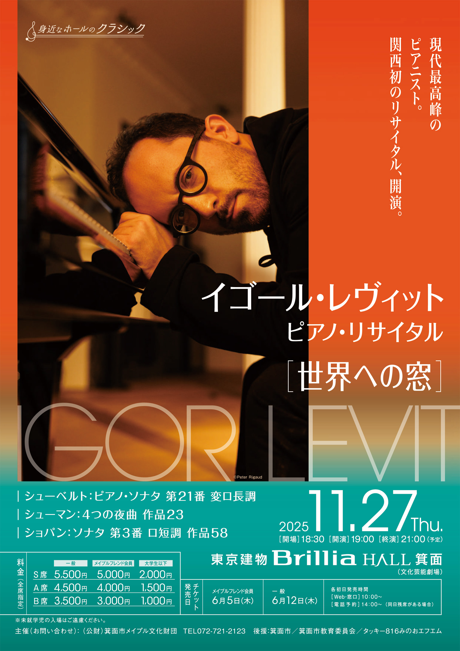 (箕面市立メイプルホール TEL:072-721-2123/受付時間:9:00~17:00/休館日:毎週月曜日(祝日の場合は開館))