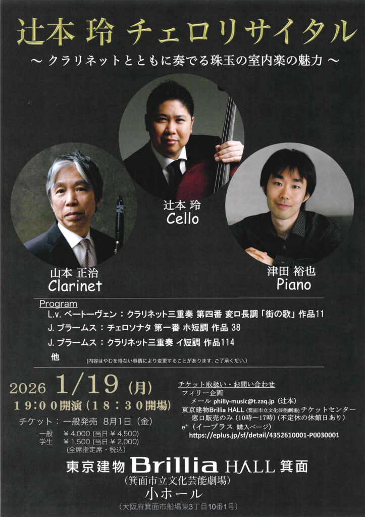 出演:辻本玲(チェロ)、山本正治(クラリネット)、津田裕也(ピアノ) 日時:20... -