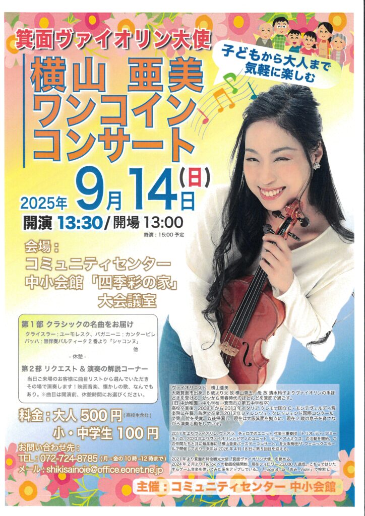 箕面ヴァイオリン大使・横山亜美ワンコインコンサート