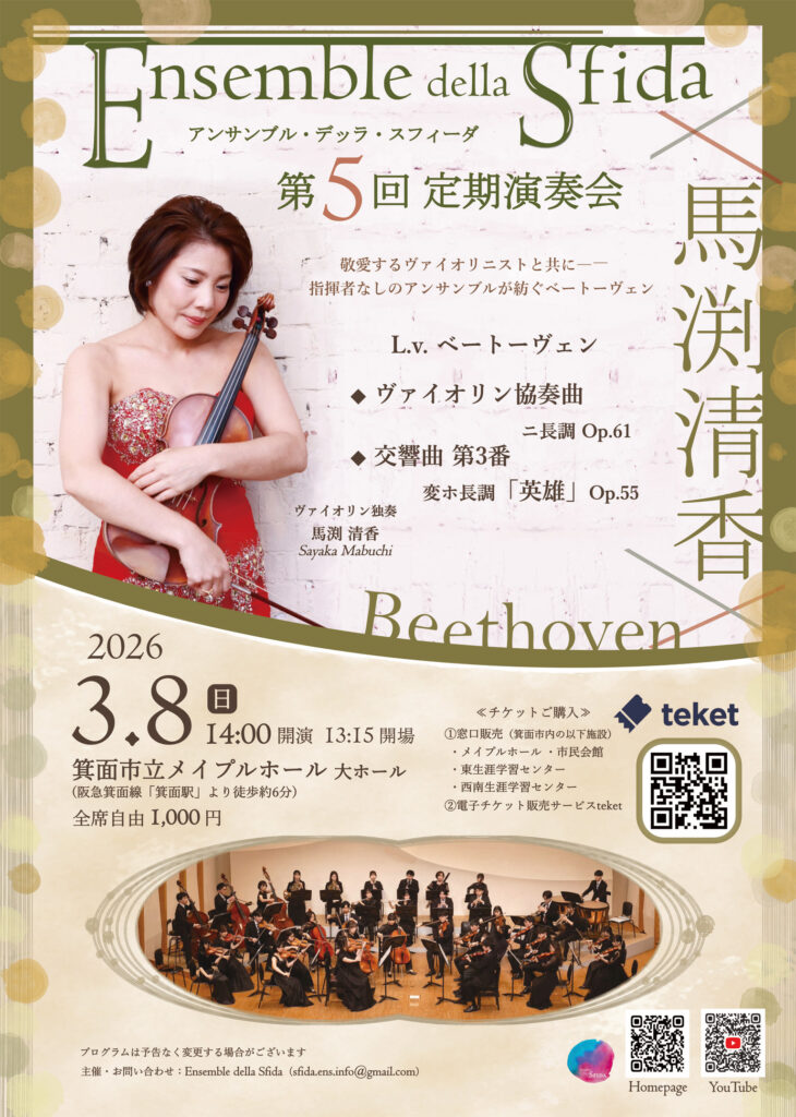 出演:Ensemble della Sfida ヴァイオリン独奏:馬渕清香 日程…3月8日 会場…メイプ...