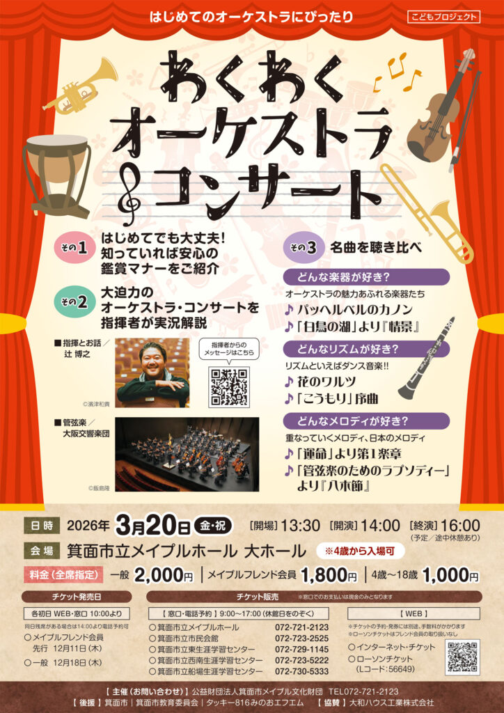 出演…辻博之さん(指揮)、大阪交響楽団 日程…2026年3月20日(金曜・祝日) 会場…... -