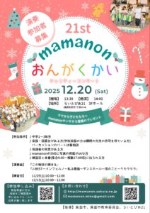 主催…mamanon 12/20(土)午後2時~4時 場所…らいとぴあ21・3階…